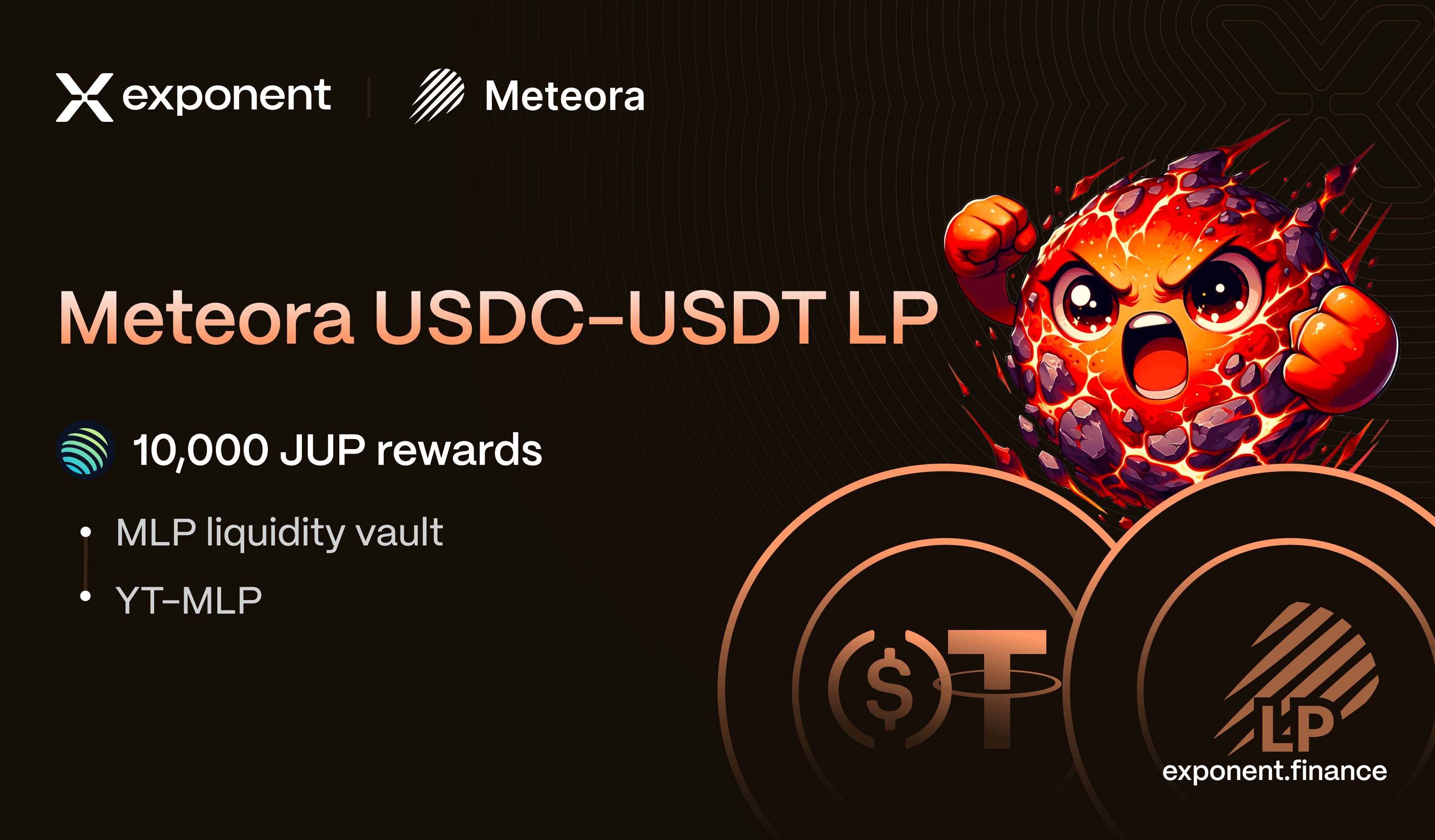 Meteora Dynamic Pools are now supported on Exponent, kicking off with Meteora LP (MLP) USDC-USDT.
